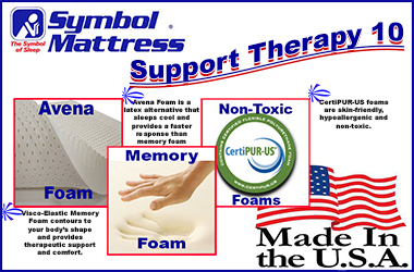 The "Support Therapy 10" features a breakthrough material in the sleep product industry; Avena™ Foam. Being the only material that surpasses latex foam when it comes to durability, this is an American-Made mattress that is built to last!